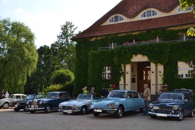 Zum Abschluss der Rallye reihten sich nun fast 30 Wagen vor dem Haupthaus und der Eichenallee auf und strahlten mit der Sonne um die Wette. Es war ein tolles Erlebnis in traumhafter Kulisse und wir sind gerne wieder Gastgeber, wenn die nächste Ausfahrt ansteht.