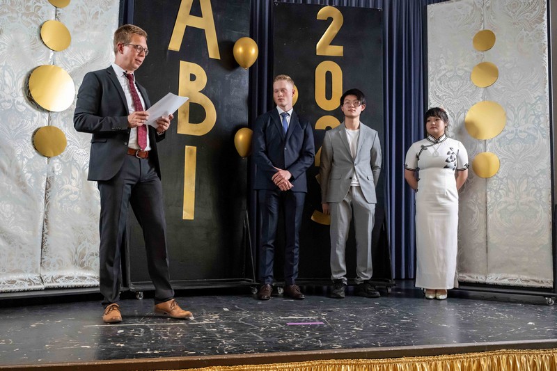 Insgesamt erreichte der Abiturjahrgang 2023 einen Abiturdurchschnitt von 2,22, neunmal stand eine Eins vor dem Komma. Als Jahrgangsbeste wurden Lasse Witt und Estelle McAllister ausgezeichnet und vom Altmarienauer Verein (AMV) mit einem Eventim-Gutschein bedacht. „Denn das beste Geschenk sind gemeinsam erlebte Momente“, sagte Tim Borchers, der für den AMV sprach. Physiklehrer Daniel Simons ging auf die Bühne und sagte, er empfinde es als Privileg, sich jeden Tag mit dem zu beschäftigen, was er liebe und was ihn fasziniere, die Physik. Und darüber hinaus sei es ein weiteres Privileg, diese Begeisterung zu teilen und so tolle Schüler zu unterrichten. Und mit diesen Worten überreichte er die Auszeichnung der Physikalischen Gesellschaft für besondere Leistungen im Fach Physik an Siqi Wang und Emile Brückner. Tjark Niemann erhielt den Walter-Zechlin-Preis des Rotary Clubs Lüneburg, er wurde für sein langjähriges und umfangreiches Engagement für die Marienauer Gemeinschaft ausgezeichnet. Tjark war Cornett, leitete gemeinsam mit Thomas Huhmann die Marienauer Schulversammlung und nahm an zahlreichen Lauf- und Schachwettbewerben teil.
