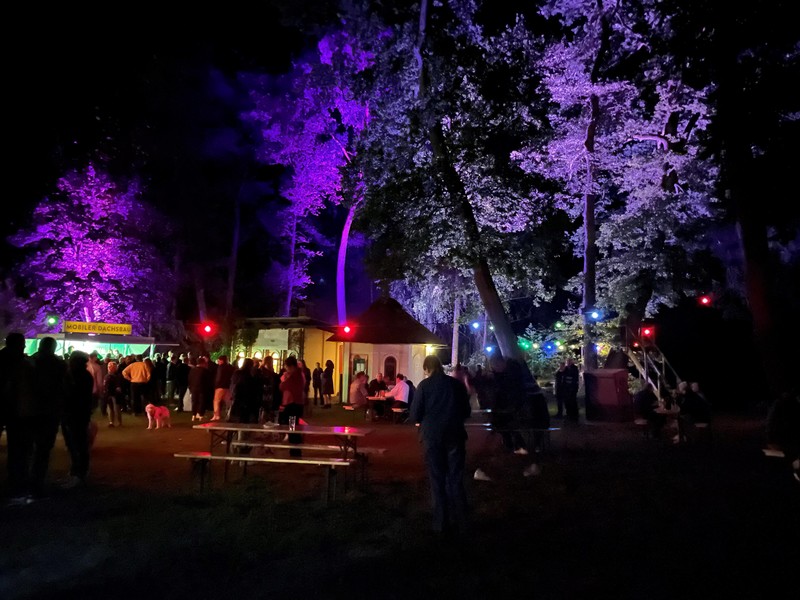 Über zwei Tage erstreckt sich das Fest: Der Mittwochabend ist zum Feiern und Tanzen gedacht, dazu luden die stimmungsvolle Beleuchtung rund um den Teich sowie Tanzboden und DJ im Zelt auf der Wiese ein. Erstmals und sehr zu unserer Freude dabei der "mobile Dachsbau" der DACHS Brauerei aus Sommerbeck. Die Atmosphäre war von der Freude über ein Wiedersehen nach so langer Zeit bestimmt und bis zwei Uhr nachts wurde getanzt und gefeiert.