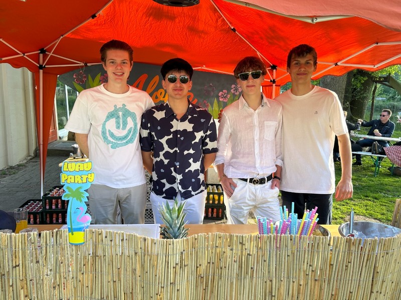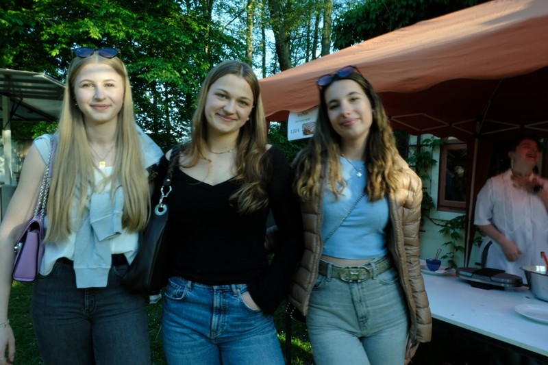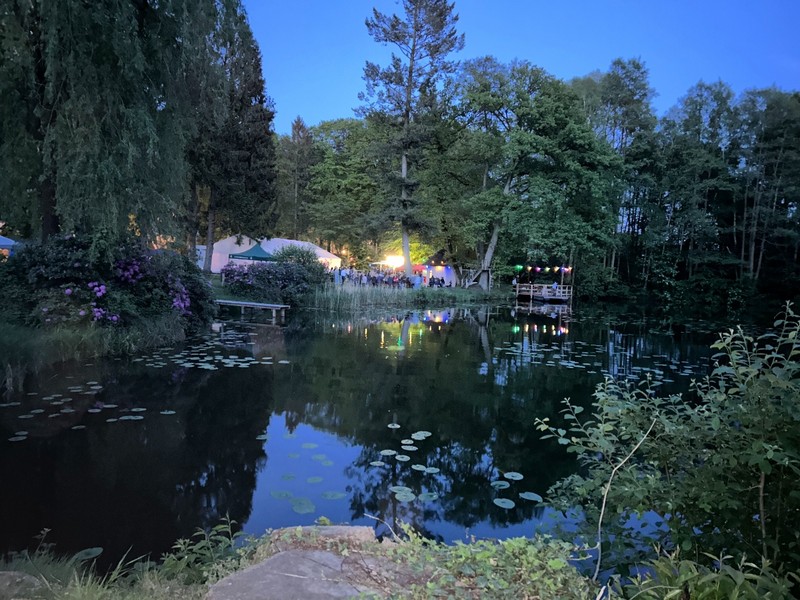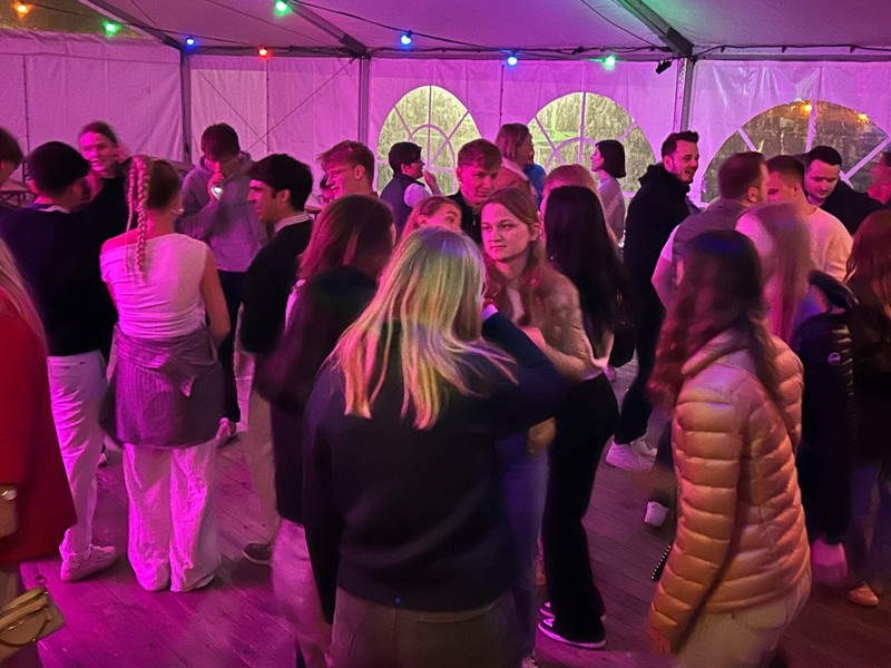 Am frühen Abend füllte sich die Festwiese am Teich und natürlich zuvor der Parkplatz, sozusagen der Marienauer Aperitif für das AMT. Die Jahrgänge der runden Abijubiläen, also 10er, 20er usw., hatten eigene Pavillons, aber letztendlich mischten sich alle Altersgruppen am Teich. Aktuelle Marienauer Schüler*innen brachten sich bei diesem AMT umfangreich ein, sie übernahmen das Grillen und einen Waffelstand, eine Mocktail-Bar und diverse Führungen am Abend und dem folgenden Donnerstag. Für Musik im Zelt zeichnete Liam, ebenfalls ein Schüler des 12. Jahrgangs, verantwortlich. Wir bedanken uns bei der Dachs Brauerei aus Sommerbeck für die bewährte Zusammenarbeit beim Ausschank - Pfoten hoch! Bis 1:30 Uhr hallte die Musik übers Gelände (und wahrscheinlich bis nach Dahlenburg), dann wurde es ruhig.