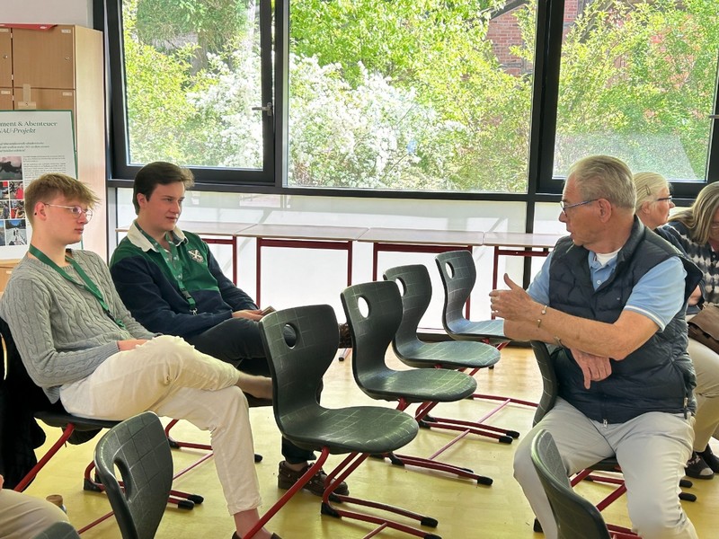 Den Auftakt am sonnigen Nachmittag des 8. Mai genossen die Altmarienauer*innen in ihrer Schule, die das 50. Abiturjubiläum feierten. Sie wurden von Schulleiter Lars Humrich und Rana Raslan-Alaoui empfangen. Das Schülersprecher-Team nahm sich anschließend Zeit für einen ausführlichen Rundgang durch Schule und Internat.