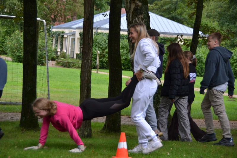 Der Sonntag startete mit dem gemeinsamen Brunch und fand seine Fortsetzung in den „Chaosspielen“. Alles ist wohlorganisiert, das Chaos entsteht erst, wenn die Wasserbomben ihr Ziel verfehlen oder das Fahren des Bobby Cars schwieriger ist als gedacht. Dahinter verbirgt sich einfach ein Kennenlern-Tag in Tischgruppen mit Spielen, die an vielen Stationen auf dem Marienauer Gelände stattfanden. Die Kolleg*innen, die eine Tischgruppe leiten, begleiteten eben diese zu den Stationen, die von den anderen Kollge*innen ohne Gruppen betreut wurden. Das bietet die Möglichkeit, sich gleich mit vielen Gesichtern und Namen vertraut zu machen. Und da wir mit sehr gut gefülltem Haus in das Schuljahr starten, gibt es in dieser Hinsicht viel zu lernen. Besonders schön ist, dass die Tischgruppen gleich an gemeinsamen Aufgaben arbeiten und sich so im Tun kennenlernen. Am Ende kamen alle zum gemeinsamen Essen zusammen und der Abend klang ruhig aus.