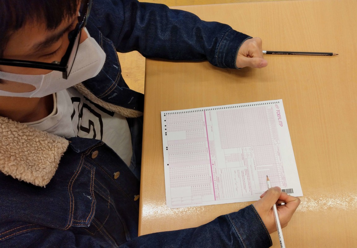 Gestern waren die 12er und 13er gefragt, insgesamt sind es aber 67 Marienauer Schüler*innen, die im Wettbewerb antreten. Jacqueline Jänsch und Jörg Blume wiesen die Schüler*innen in das Standard-TOEFL-Procedere ein. Der Test wurde unter Klausurbedingungen durchgeführt, d.h. mit Abstandsbestuhlung und Dauerlüftung, so dass die Schüler*innen während der dreistündigen Bearbeitungszeit auch die Möglichkeit haben, die Masken abzusetzen.