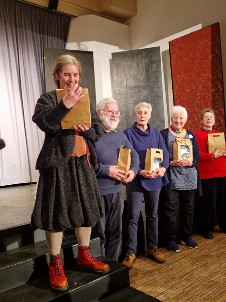 Die Initiative Omas gegen Rechts gab den Anstoß und machte Internatsleiter Tobias Karrasch auf das Stück aufmerksam. Drei von ihnen nahmen sich im Anschluss an die Vorstellung zusammen mit Schauspielerin Kerstin Wittmann und Regisseur Caspar Harlan Zeit für den Austausch mit den Marienauer*innen. Wir möchten allen Schulen und Institutionen dieses Stück sehr ans Herz legen und können es uneingeschränkt empfehlen.