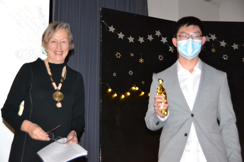 Traditionell ist der Höhepunkt der Internatsweihachtsfeier die Rede von Heike Elz und Tobias Karrasch. Sie nehmen uns an die Hand und lassen das Jahr Revue passieren, Monat für Monat - und für besondere Taten verleihen sie die „Goldene Marie“. Besonders meint einerseits Engagement, das heraussticht und das Schul- und Internatsleben bereichert, andererseits kann man sich auch mit Aktionen hervortun, die nur entfernt etwas mit Engagement, dafür aber mit Erheiterung der Mitmenschen zu tun haben. Ausgezeichnet wurden in diesem Jahr u.a. Bowen für botanischen Einsatz in Gelände und Zimmer; Markus Panning für die Fähigkeit, Läufer*innen im kalten November für Läufe an der Steilküste der Elbe zu begeistern; Kai für Selbstheilungskräfte im Rettungswagen; Monika Reece fürs „Rübermachen“ bevor der Brexit Reisen von und nach Großbritannien erschwert; Lennart, Linus und Caspar für heldenhafte Augen-OPs im Wald; Jörg Blume und Leon, die die Leidenschaft fürs Bad im Teich teilen - mehr oder weniger - und alle Freund*innen für abendliche Open Airs und Wildkameras.