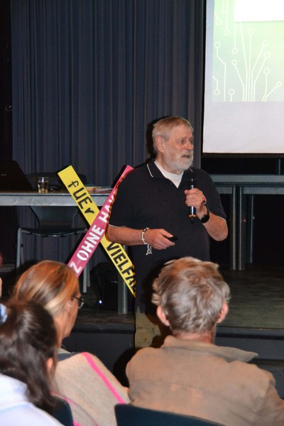 Martin Raabe, der viele Jahre als Pastor im Auslandsdienst tätig war und nun als Kurator der Eleonore-Dräger-Stiftung arbeitet, widmet einen großen Teil seiner Lebenszeit der Aufklärungsarbeit. An seiner Seite sind mittlerweile mehr als 500 aktive Unterstützer*innen, die Gruppe ist Teil des Bündnisses für Demokratie und Toleranz gegen Extremismus und Gewalt. Auch an diesem Abend begleiteten mehrere Mitglieder, Martin Raabe ist Sprecher und Gesicht der Gruppe – was nicht immer einfach ist und auch bedeutet, offenen Anfeindungen, nächtlichen Anrufen usw. ausgesetzt zu sein. Und dennoch engagieren er und alle anderen sich beherzt für die Aufklärung und gegen das Erstarken der rechten Szene. In seinem Vortrag wurde deutlich, wie weit verzweigt das rechte Netzwerk ist, nicht zuletzt findet es seinen politischen Ausdruck in der AfD. „Während der Veranstaltung war es manchmal gar nicht so leicht, zu unterscheiden, ob es gerade um die Geschichte von vor 100 Jahren geht oder um aktuelles Zeitgeschehen, denn Haltungen, Bilder und Aussagen sind offenkundig deckungsgleich“, sagte Geschichtslehrer Niklas Pröhm nach der Veranstaltung. „Da ich in meiner nächsten Unterrichtsstunde den Nationalsozialismus als Thema beginne, habe ich nach diesem Abend einen direkten und leider sehr aktuellen Aufhänger zum Einstieg.“