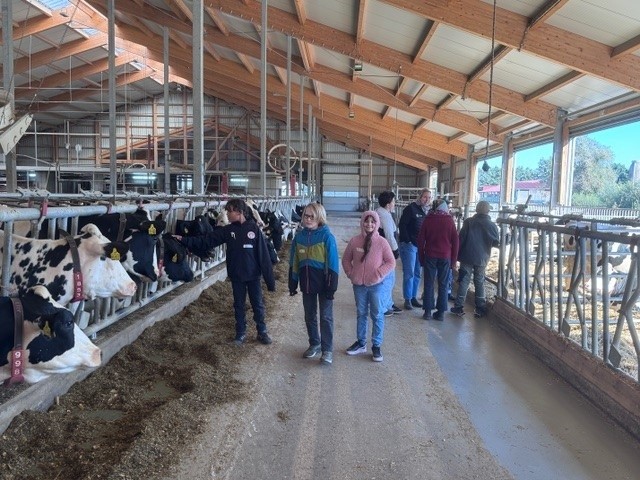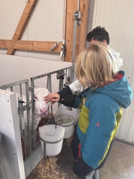 Der Tag auf dem Hof war praxisnah und lebendig. Bevor die Kinder den Stall betraten, reinigten sie ihre Schuhe in flachen Desinfektionswannen. Sie verdeutlichen den hohen Stellenwert von Hygiene und Tiergesundheit, der auf dem Hof selbstverständlich gelebt wird. Im Stall beobachteten die Schülerinnen und Schüler den Einsatz eines automatischen Futterroboters und erfuhren, wie Kreislaufwirtschaft und Biogasanlagen funktionieren.