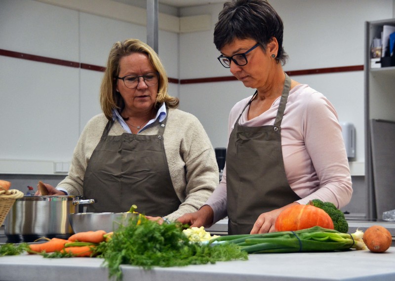 Ganz gleich, ob im Unterricht, der Challenge-AG Kochen oder mit der Tischgruppe – Anlässe gemeinsam zu kochen oder backen gibt es in Marienau viele. Dabei geht es auch um das gemeinsame Erleben, aber nicht nur. Ziel ist, dass wir dem saisonalen, regionalen und verantwortungsvollen Umgang mit Lebensmitteln in unserem Leben und Lernen in Marienau verankern. Uta Seemann, didaktische Leiterin an der Schule Marienau, führt die Arbeitsgruppe „Küche im Curriculum“, die die Nutzung der Lernküche in allen Jahrgangsstufen einarbeitet. „Wir legen Wert darauf, dass alle Fächer diesen Lernraum für sich nutzen können. Erdkunde und Biologie sind vielleicht besonders naheliegend, aber auch die Fächer Geschichte und Mathematik können hier Inhalte ‚begreifbar‘ machen. Und auch Physik und Chemie sind keineswegs auf die naturwissenschaftlichen Unterrichtsräume festgelegt. Wir lernen am besten, wenn wir etwas tun“, betont Uta Seemann.