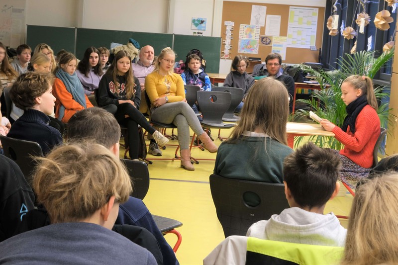 Der Deutschunterricht in den Klassen 5 bis 7 stand zum Jahresbeginn ganz im Zeichen des Vorlesens: Zunächst wurden klassenintern die besten Vorleserinnen und Vorleser gekürt, die ihre Lerngruppen beim schulweiten Lesewettbewerb vertreten sollten.