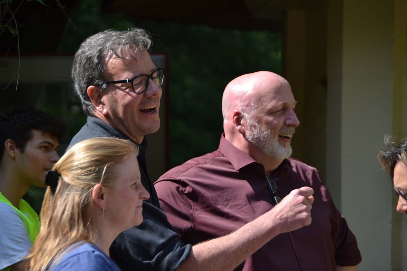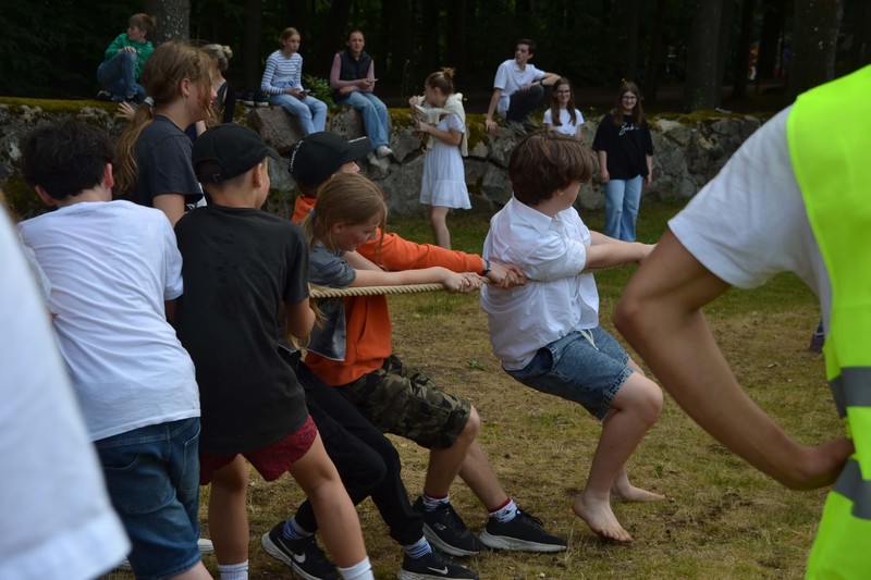 Beim Länderwettraten nach Alphabet trat Jan-Malte Müller gegen Marianne Kretschmer und Matthias Ratzlaff an, letzterer fand sich kurz darauf auch mit den Kolleg*innen der Mathefachschaft wieder ein beim allseits beliebtem Kettenrechnen im Kopf. Zum Quiz in Biologie traten Gabriele Bendig und Reimer Hinrichs an, gleich vier weitere Lehrkräfte stellten ihr Können im Freestyle-Step Aerobic unter Beweis. Ein echtes Highlight war die „listening comprehension“, in der sich die Englisch-Lehrkräfte mit den O-Tönen von irischen Schafzüchtern, pakistanischen Ladenbesitzern und vielen weiteren Herausforderung aus dem englischen Sprachraum konfrontiert sahen. Nach dem Schaumkuss-Wettessen ohne Hände, bei auch einige Schüler*innen mitmachten, verlagerte sich die Szenerie in den hinteren Teil des Marienauer Geländes. Hier lockten vertraute Spiele aus Kindergeburtstagszeiten wie Tauziehen und Reise nach Jerusalem, aber auch Beachvolleyball.