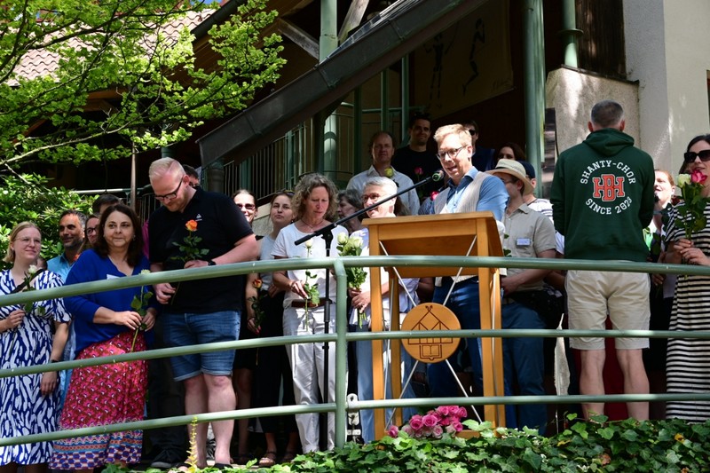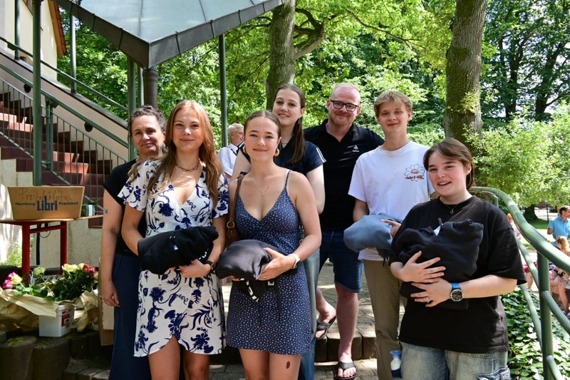 Schließlich wurde es noch einmal offiziell, Zeit für Ehrungen und Verabschiedungen. Neben doch vielen Schüler*innen aus den 10. und 11. Klassen, die Marienau für ein Auslandsjahr verlassen, verabschiedete sich die Schulgemeinschaft auch von einigen Kolleg*innen. Andreas Knust, ein Marienauer Urgestein, wird fortan einen deutlich kürzeren Arbeitsweg haben, was uns für ihn freut, und uns zugleich traurig stimmt, war er doch 24 Jahre Teil von Marienau. Auch das Nelson-Mandela erwartet neue Bewohnerinnen, da Maxi und Adrian Matthäi nach 4 Jahren Marienau verlassen werden. Ihre nächste Station steht noch nicht fest, aber wir wünschen ihnen alles Gute für all das, was kommen wird. Auch unsere beiden Volunteers ziehen weiter: Majiu Repo aus Finnland hatte ihren ursprünglich einjährigen Aufenthalt verlängert, nun nach zwei Jahren ist ihr nächstes Ziel Australien. Auch Svaijone Leleikaite aus Litauen unterstützte ein Jahr lang in Schule und Internat, ihr Wunsch ist es aber, im kommenden Jahr für ein Studium nach Lüneburg zurückzukehren.
