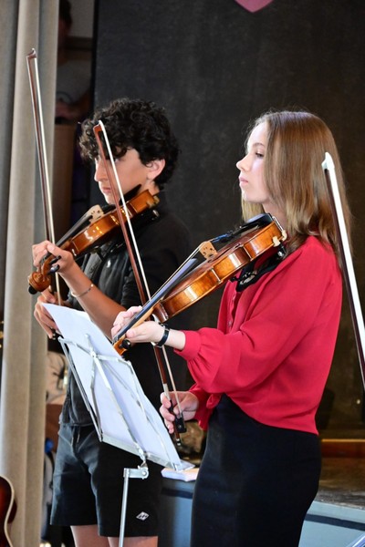 Am Samstagmorgen ging es nach dem Frühstück zunächst ans Ausräumen der Internatszimmer, um 11 Uhr versammelten sich dann viele Marienauer*innen und Eltern im Speisesaal zum Konzert. Die Musikfachschaft mit Iuliia Schmidt und Florian Fietchner brachte viele Schüler*innen auf die Musik. Klavier, ein Ensemble von Streichinstrumenten, Soloauftritte mit Gesang, Gitarre, Standardtänzen und Ballett sowie der Marienauer Chor sorgten für abwechslungsreiche Unterhaltung.