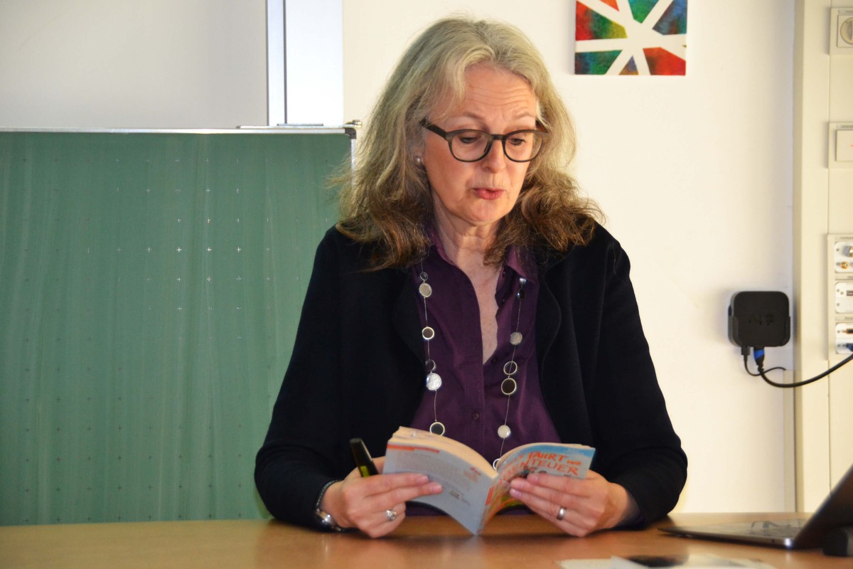 Katharina Reschke, die neben Kinderliteratur und Büchern für Erwachsene auch Drehbücher fürs Kino („Hanni und Nanni“) und für Fernsehserien verfasst, unterbrach ihre Lesung immer wieder, um mit den Schülern/-innen ins Gespräch zu kommen: über die großen Themen, wie wir unsere Welt gestalten wollen und wie nachhaltiges Leben möglich wird, oder für kleine Quizfragen, mit denen die beiden Klassen einen (Schokoladen-)Goldschatz gewinnen konnten.