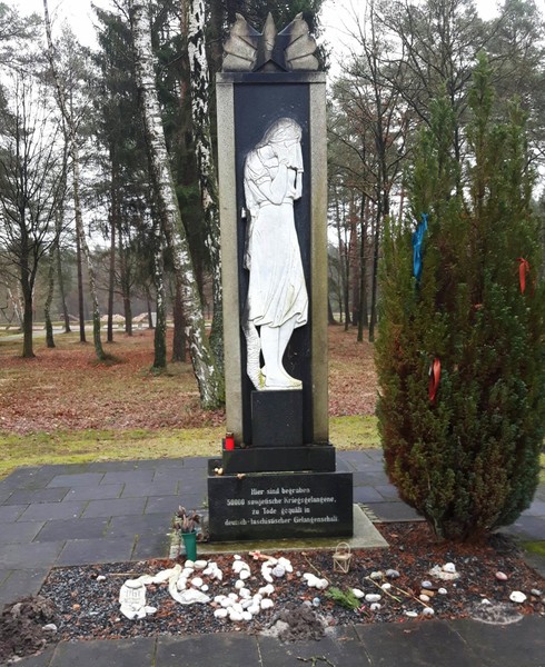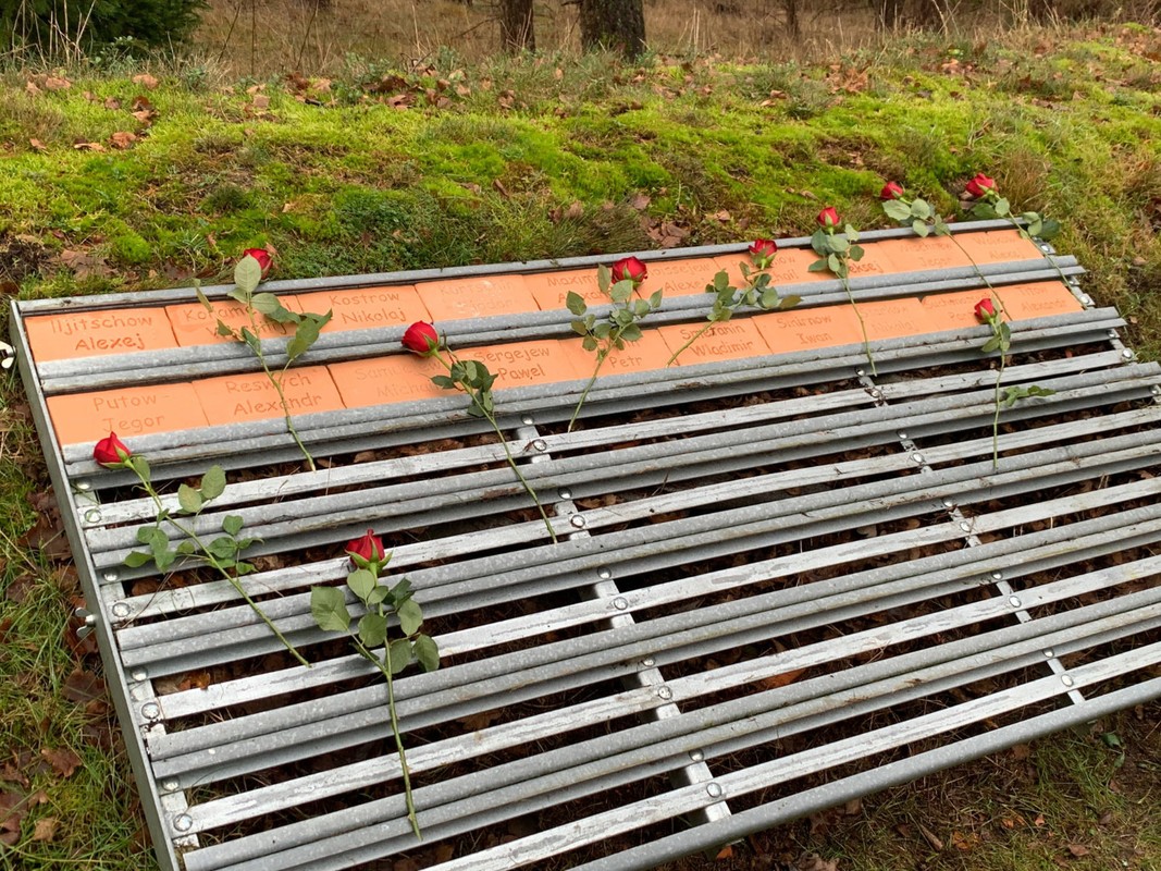 Anfang Oktober startete die Geschichts-AG dieses Projekt und sammelte Informationen über sowjetische Kriegsgefangene in Bergen-Belsen. Diese Gefangenen liegen heute in einem Massengrab auf dem nahegelegenen Friedhof Hörsten, mit 20.000 weiteren, identitätslosen Kriegsgefangenen. Um diese nicht im Vergessenheit geraten zu lassen, fertigte die AG Tontafeln mit den Namen, Geburts- sowie Sterbedaten, wenn diese bekannt waren. Diese wurden im Zuge einer Zeremonie zu vielen weiteren Tontafeln von anderen Schulen auf den Friedhof gelegt. Aufgrund thematischer Zusammenhänge mit dem Geschichtsunterricht der 9. Klasse nahmen alle an einer Führung auf dem historischen Gelände desKonzentrationslagers teil und bekamen im Anschluss noch die Möglichkeit die Ausstellung zu besichtigen. Trotz des großen Interesses der Schüler*innen bemerkte man im Laufe der Führung die thematische Belastung, die durch das trübe Wetter noch weiter verstärkt wurde. Zum Abschluss kam die Gruppe zur Gedenkstätte auf dem Gelände, wo auch der Gedenkstein von Anne und ihrer Schwester Margot Frank steht, sowie der Obelisk von Bergen Belsen. Insgesamt war es eine informationsreiche und sehr intensive Exkursion, die allen nahe ging.