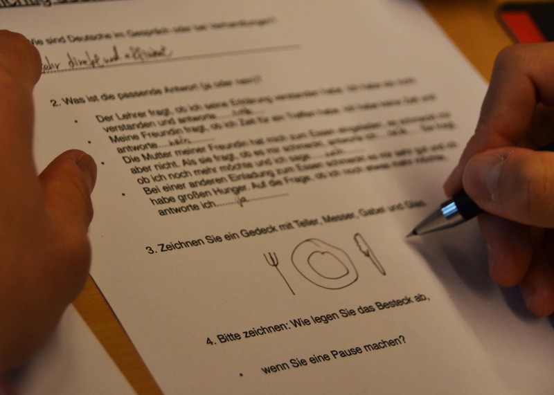 Die Leiterin des internationalen Teams, Rana Raslan, fördert diese Gegebenheiten durch Integrationsarbeit unmittelbar nach dem Eintreffen in Marienau und lädt auch unterstützend gerne externe Fachkräfte ein. Dazu gehört Babette Gott, Mutter eine Altmarienauerin, die seit Jahren Knigge und Kulturkurse in Marienau anbietet. Heute stand der Kurs „Richtig deutsch?“ auf dem Programm. Wie sind Deutsche in Verhandlungen? welche Etiketten sind zu beachten beim Essen, im Schriftverkehr und in der Kleidung? dies sind nur einige Auszüge aus dem Programm des Workshops. Das Feedback der Teilnehmer*innen war sehr positiv und ermutigt zu Fortsetzungen: „Es war sehr interessant und aufschlussreich“, „Mir hat es gut gefallen“, „Es war lehrreich und mir machte es auch Spaß“ sagten die Schüler*innen im Anschluss an den Kurs und wir danken Babette Gott für ihren Einsatz in Marienau.