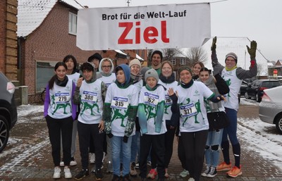Den eisigen Temperaturen zum Trotz machten sich einige Marienauer*innen am 3. Dezember auf den Weg zur Kirche St. Johannes in Dahlenburg. Pastorin Sandra Golenia, die selbst auch an den Start ging, hatte zum „Brot für die Welt-Lauf“ geladen, um die jährliche Spendenaktion der evangelischen Kirche in Deutschland zu unterstützen. Markus Panning, Leiter der Challenge-AG Laufen & Fitness, ist jedes Jahr gerne mit Schüler*innen aus Marienau dabei: „Da es im Winter nicht so viele Lauf-Veranstaltungen gibt, ist das für uns eine tolle Gelegenheit im Training zu bleiben, und für den guten Zweck lohnt sich jeder Schritt!“ Deshalb spricht er, ähnlich wie beim Lauf für das onkologische Netzwerk Wendland ONW, auch immer alle Marienauer*innen an, sich zu beteiligen. „Es geht hier ja nicht um Bestzeiten, sondern darum, gemeinsam Spenden zu generieren. Da ist egal, wie schnell man unterwegs ist.“ Anschließend gibt es von der Kirchengemeinde warmen Tee, weihnachtliches Gebäck und eine herzhafte Bratwurst vom Grill. Inga Bohnsack und zwei angehende Erzieherinnen von der St. Franziskus Fachschule in Lingen starteten als Walkerinnen, weitere 13 Marienauer*innen liefen die knapp 4 km lange Strecke.