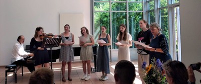 Das Konzert im Forum eröffnet den zweiten Tag des Sommerfests. Musiklehrer Florian Fiechtner hatte Schülerinnen und Schüler von der Unterstufe bis zur Oberstufe versammelt, die am Samstagvormittag für Familie und Freunde und die ganze Marienauer Gemeinschaft spielten und sangen. Auch die beiden Lehrerinnen Kathrin Humrich und Sibylle Filter waren als Mitgleider des Chors Teil des Konzerts.