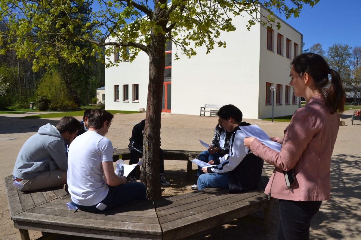 Der umgebende Wald bietet Läufer*innen und Reiter*innen ideale Bedingungen. In den Pausen können sich die Schüler*innen draußen aufhalten und bewegen. Das Schulgelände ist ein großes Privileg, das wir sehr zu schätzen wissen.