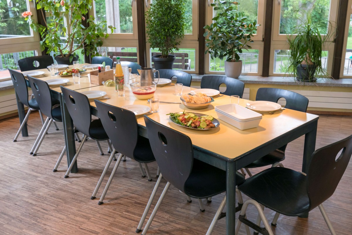 Das Zusammenkommen am Tisch ist in einer Familie wie auch in der Schule Marienau ein wichtiger Aspekt. Die Schüler*innen sind für die Dauer eines Schuljahres beim Mittagessen festen Gruppen zugeordnet. Die Internatsschüler*innen sitzen in Tischgruppen zu acht Personen zusammen. Mit dieser Tischgruppe essen sie auch zu Abend und verbringen donnerstags den Gruppenabend gemeinsam.